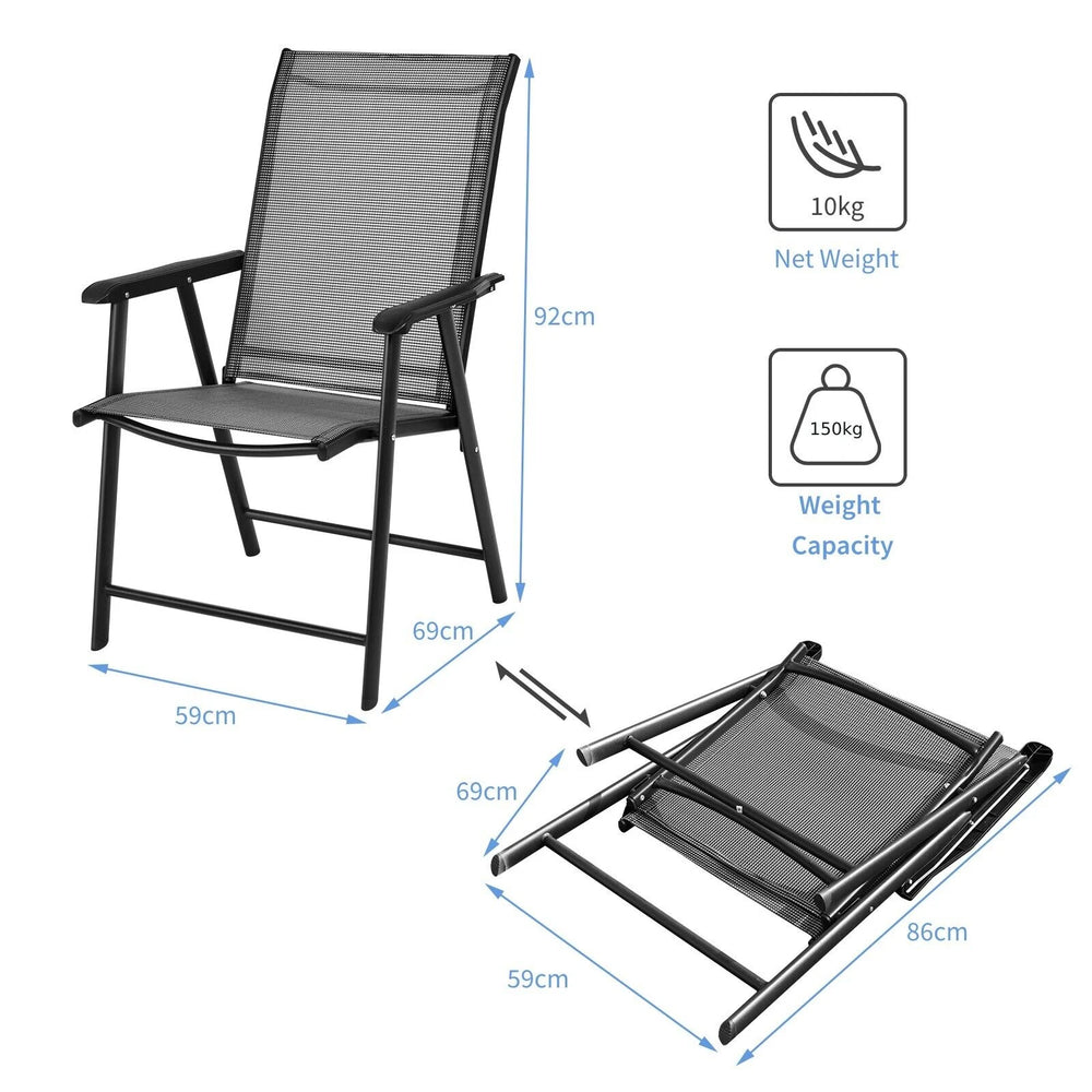 The set arrives fully assembled so there is no installation required — simply unfold and sit. When not in use the chairs fold flat for compact storage or transport, making them easy to take to camping, picnics or to store in an outbuilding.