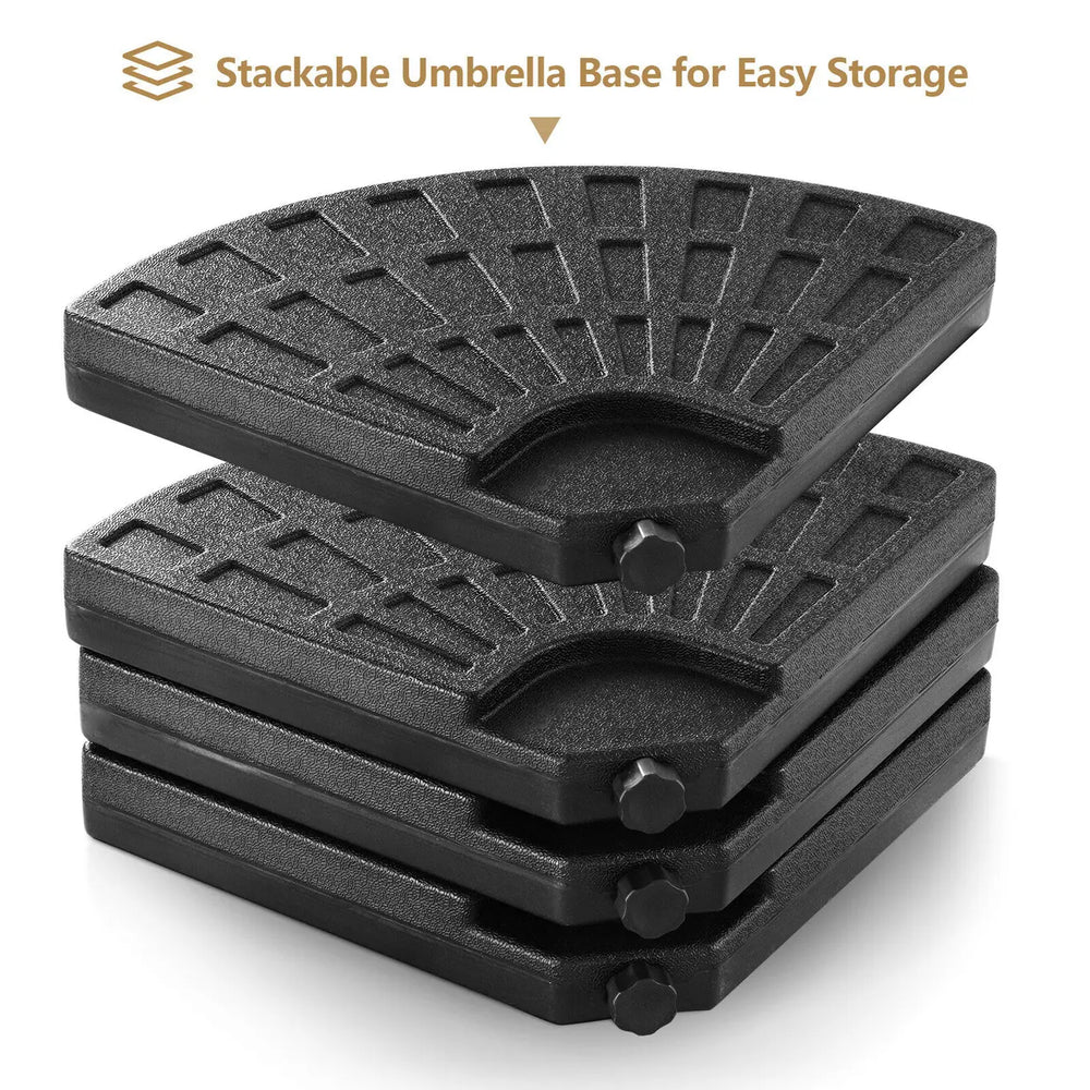 Colour: Black Material: HDPE Each Plate Dimensions: 48 x 48 x 7.5 cm Product Weight: 6kg The Weight of Filled with Sand: 66kg Package includes: 1 x Base Weight 1 x Instruction Manual