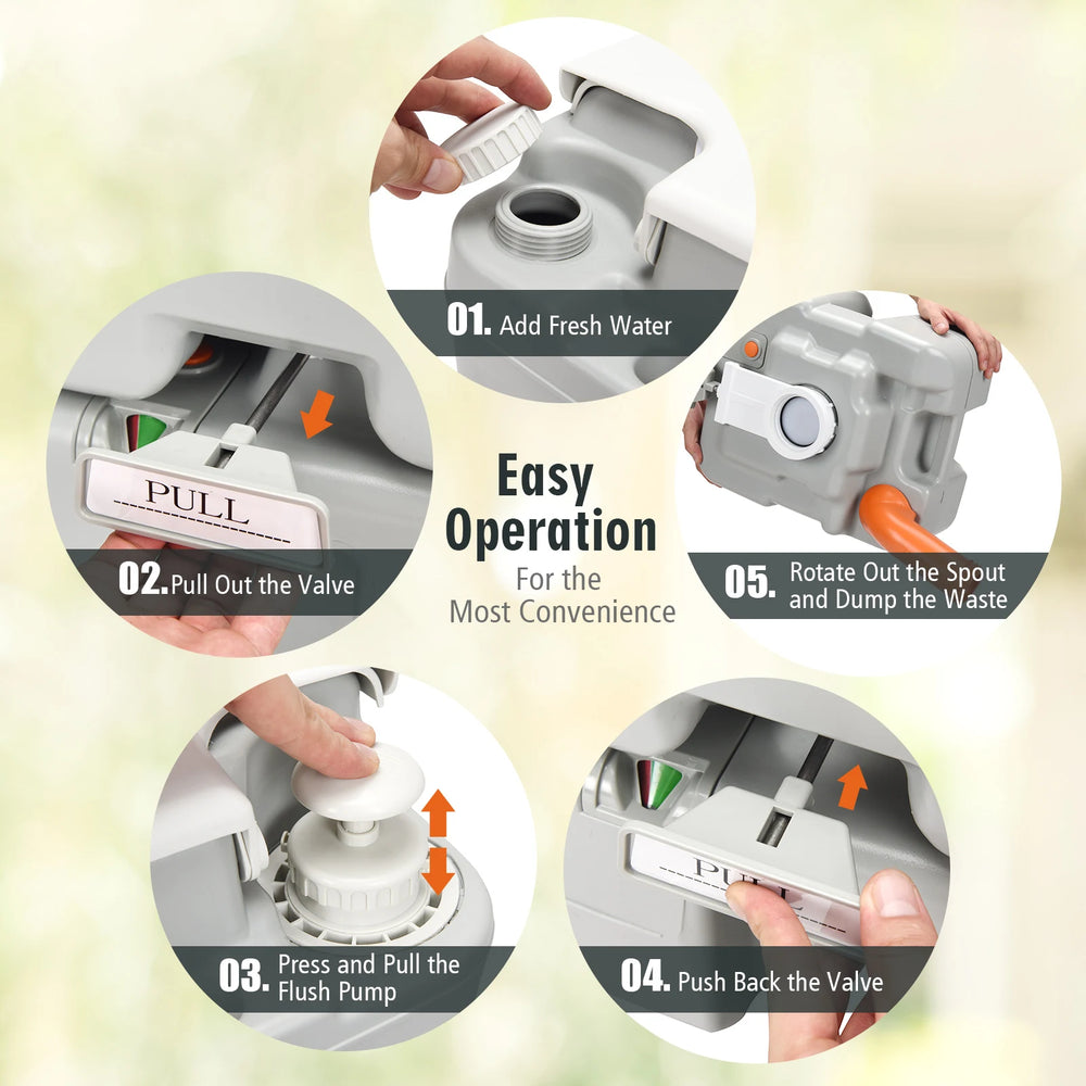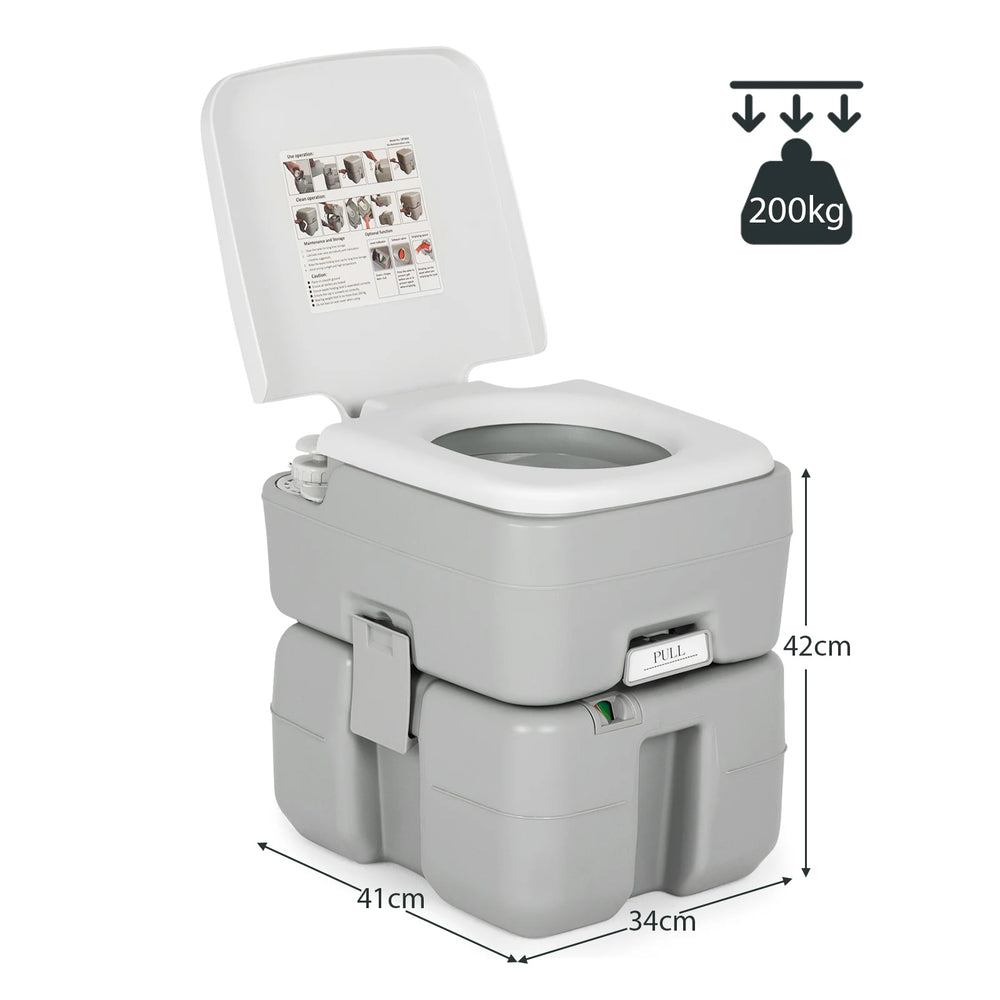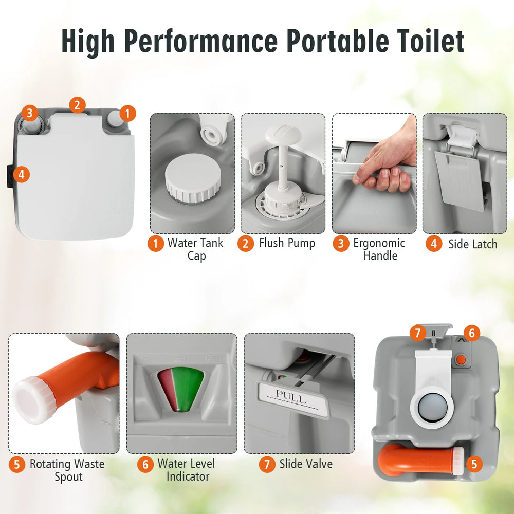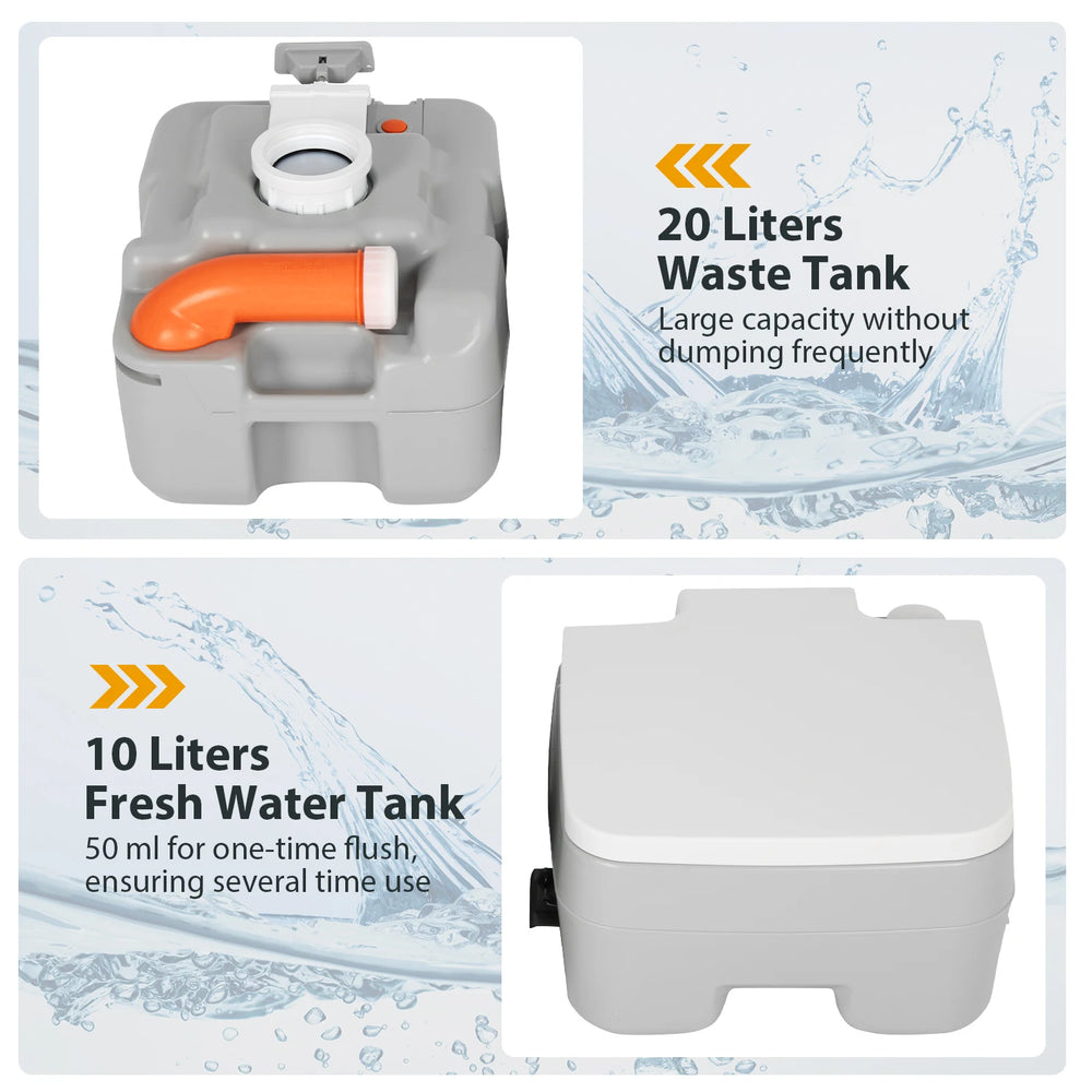 Portable Toilet with 20L Waste Tank & Flush Pump for Outdoor