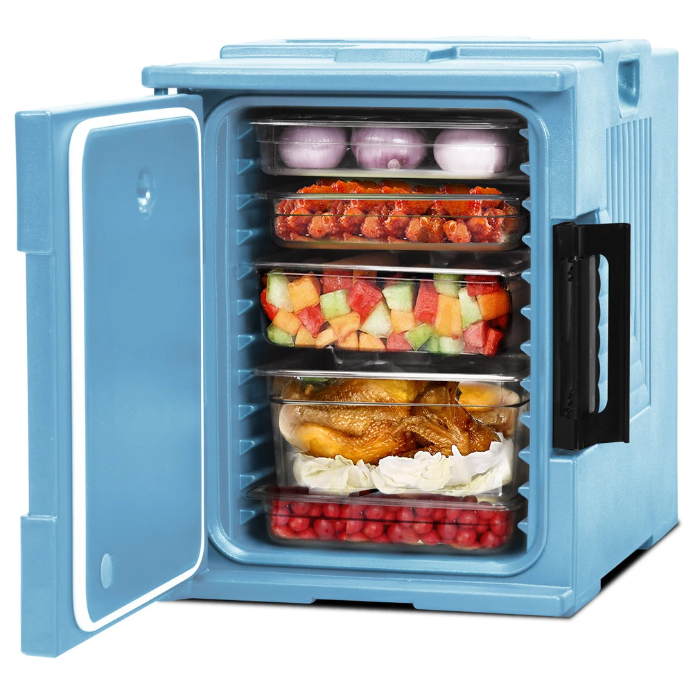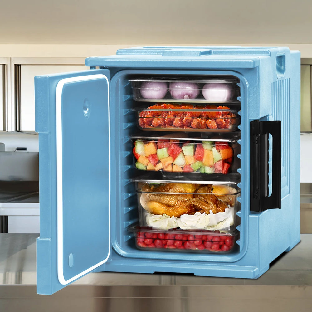 Front-Loading Insulated Food Pan Carrier for 6 Full-Size Pans-Blue