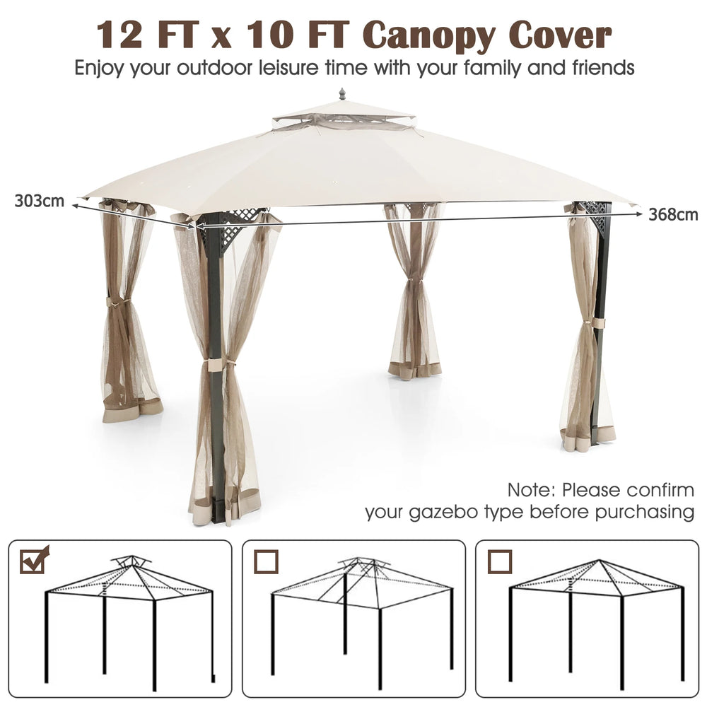 10 x 12 Feet Gazebo Replacement Top with Air Vent and Drainage Holes-Beige