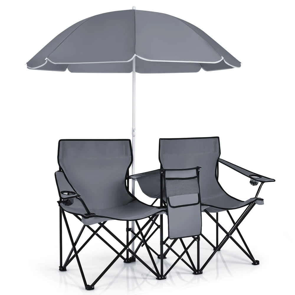 Portable Folding Picnic Double Chair With Umbrella-Gray