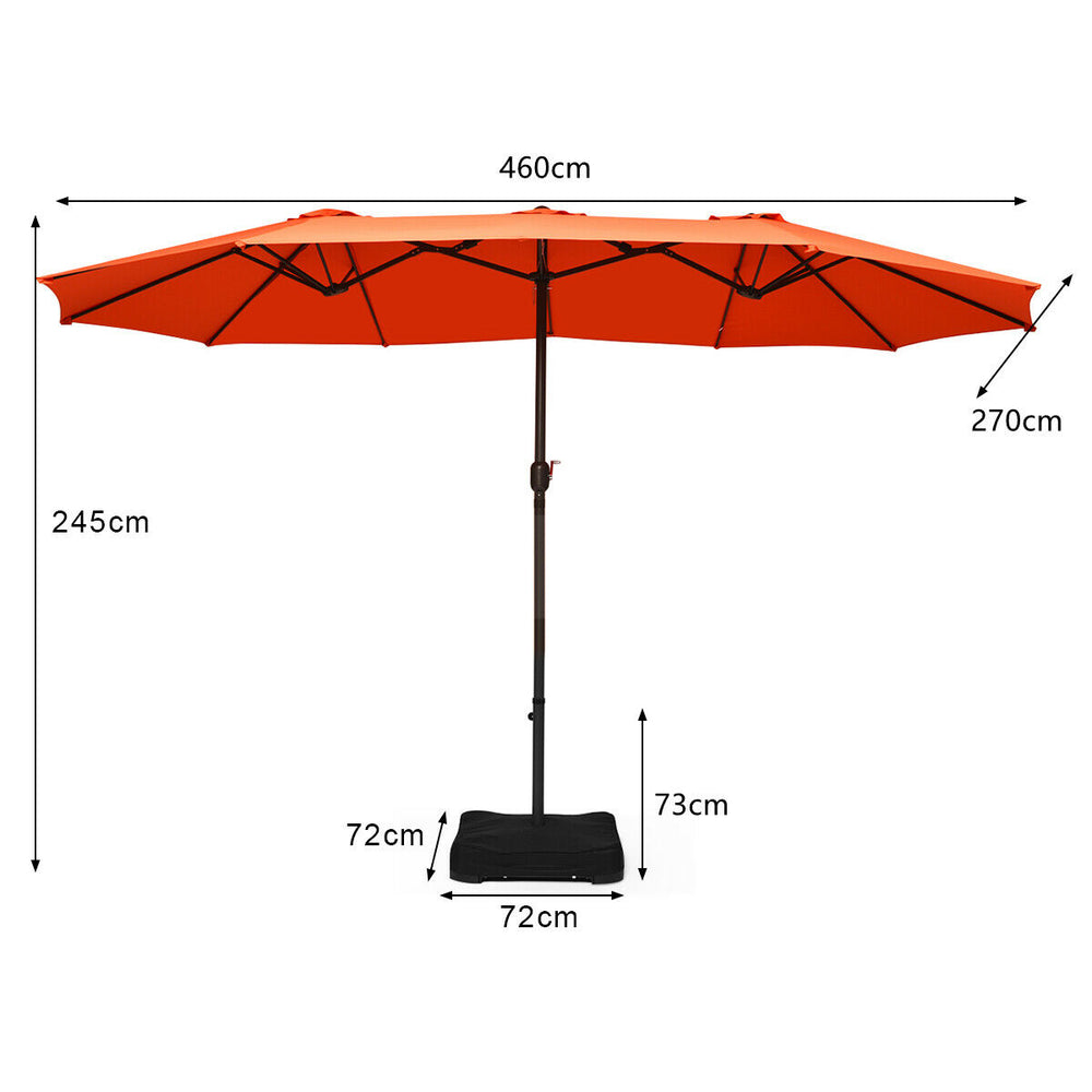15 Foot Extra Large Patio Double Sided Umbrella with Crank and Base-Orange