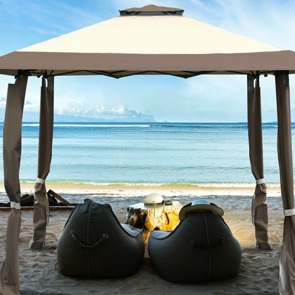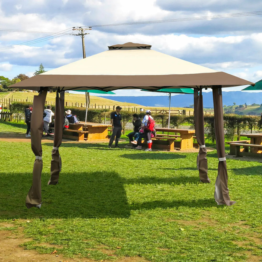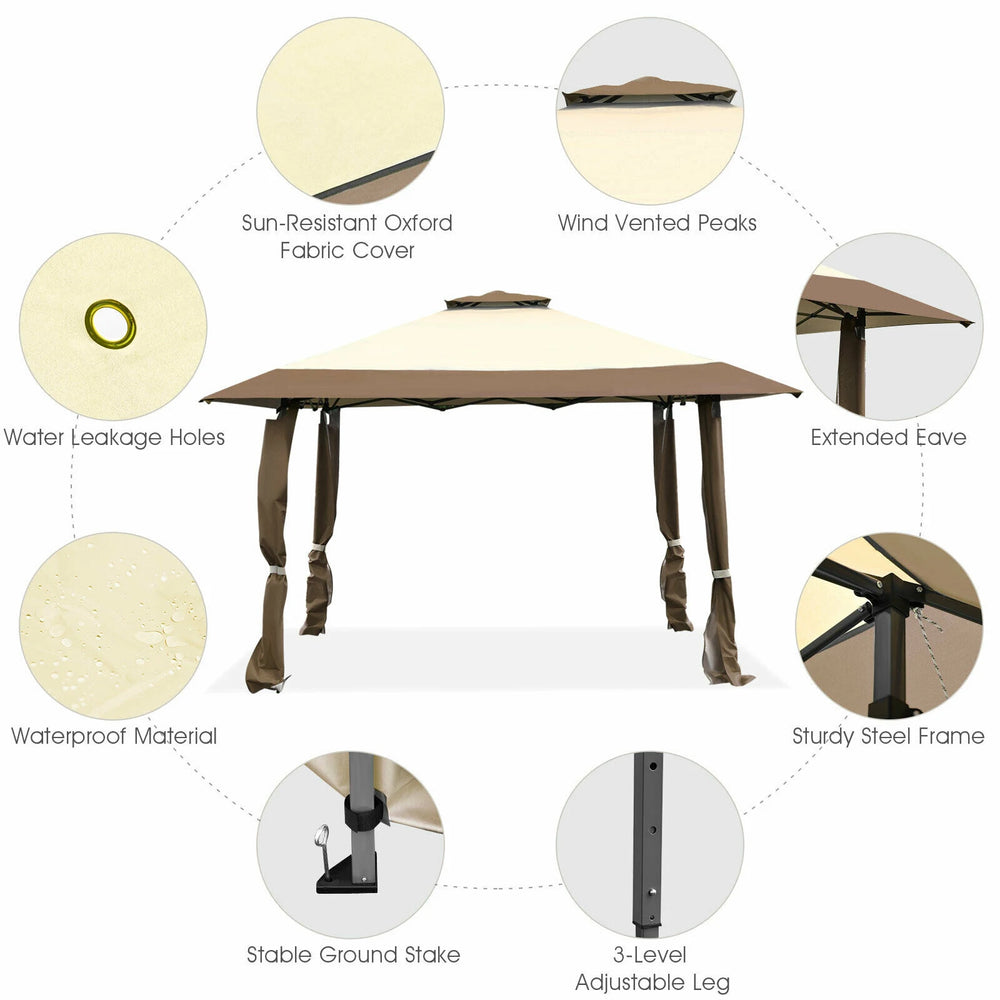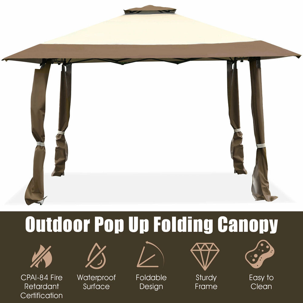 13 Feet x 13 Feet Pop Up Canopy Tent Instant Outdoor Folding Canopy Shelter-Brown