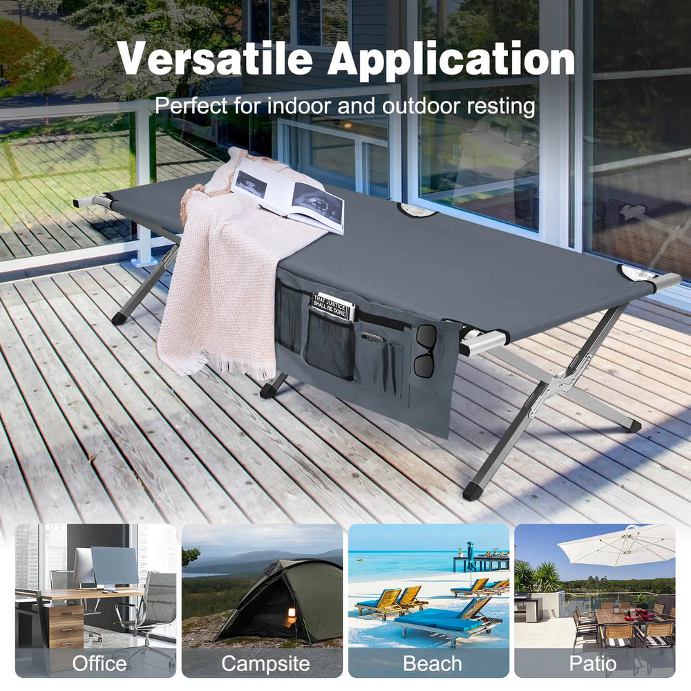 Folding Camping Cot Heavy-duty Camp Bed with Carry Bag-Gray