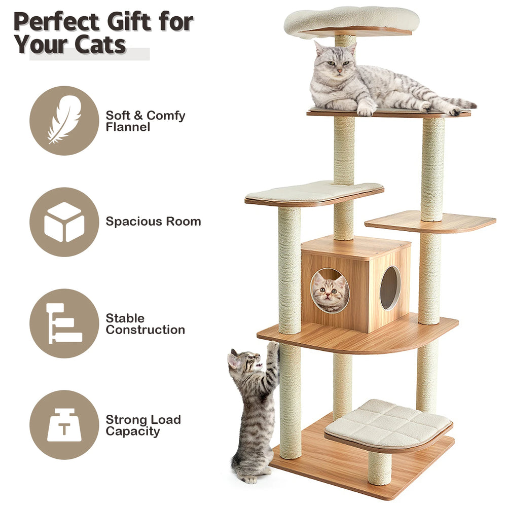 Modern Cat Climbing Tree with Scratch Resistant Sisal Rope Column for Cats