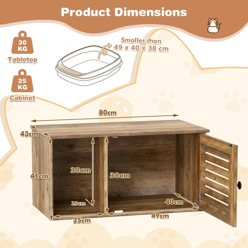 Cat Litter Box Enclosure with Louvered Door and Open Compartment