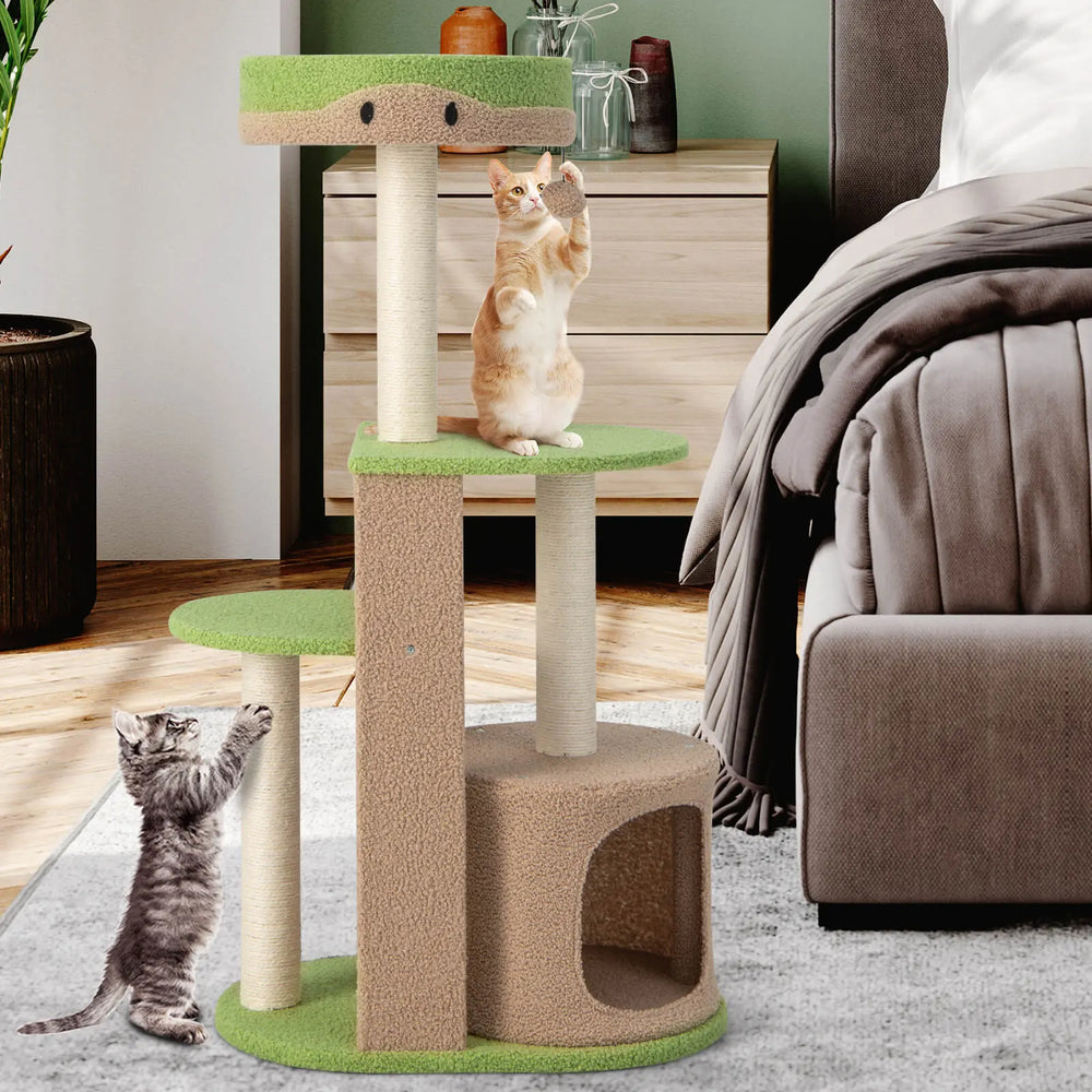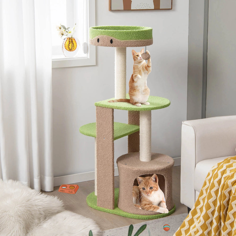 5-Tier Modern Cat Tree Tower for Indoor Cats with Sisal Scratching Posts-Green