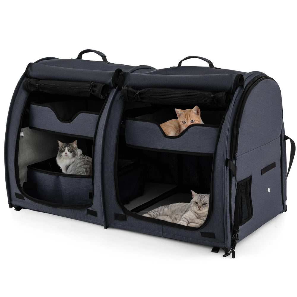 Double Compartment Pet Carrier with 2 Removable Hammocks-Black