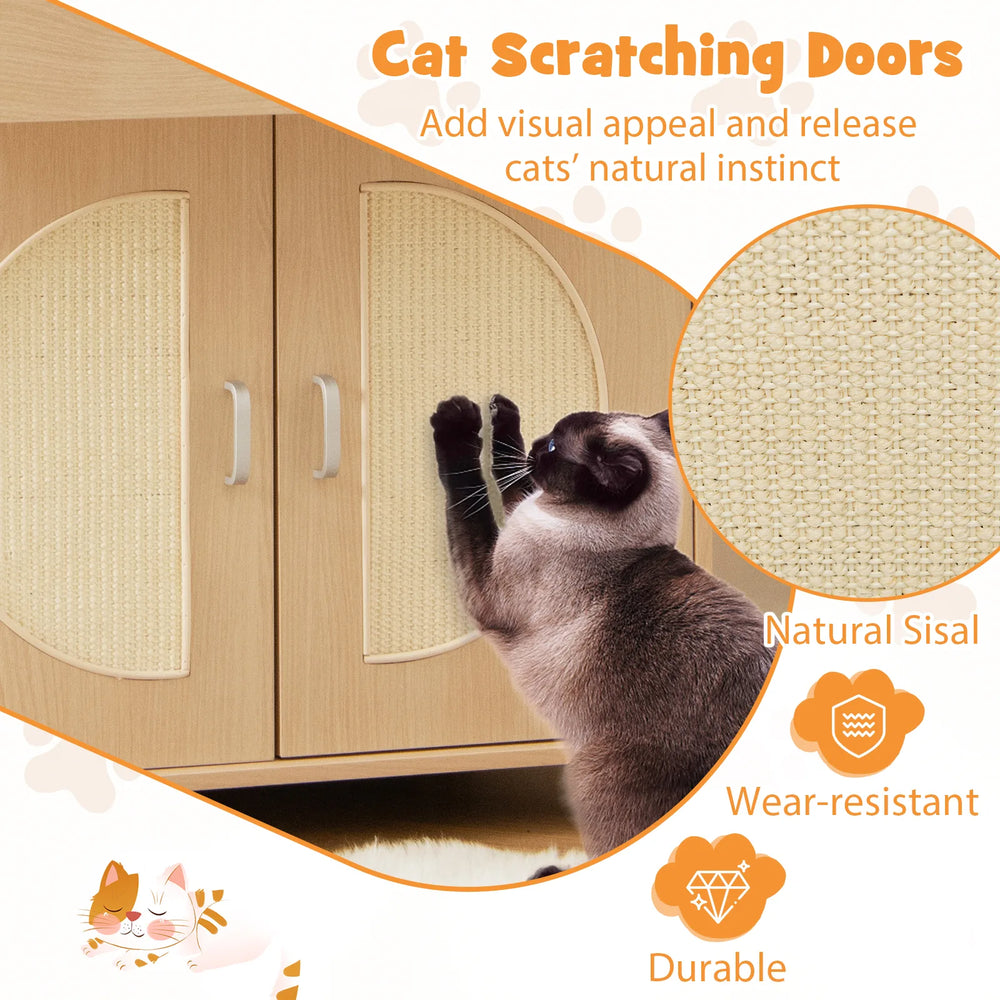 Cat Litter Box Enclosure with Sisal Scratching Doors and Storage-Natural