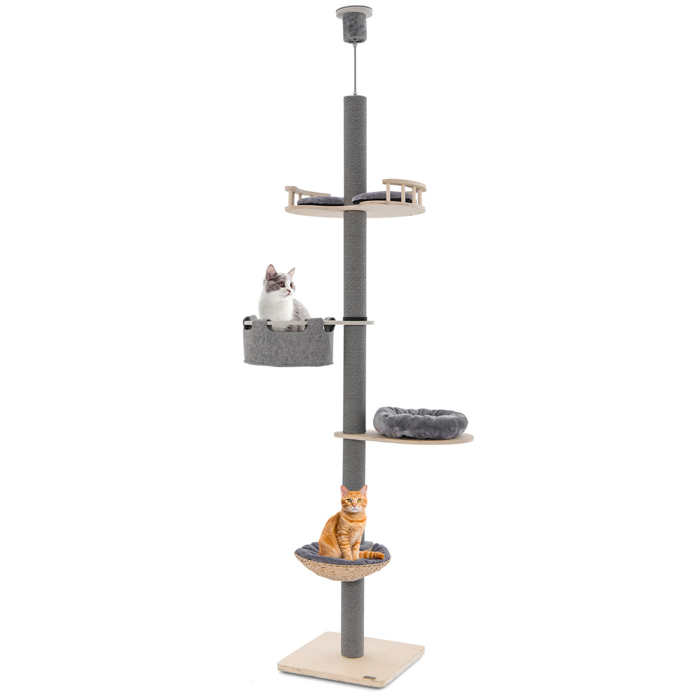Floor to Ceiling Cat Tree with 93"-107" Adjustable Height-Gray
