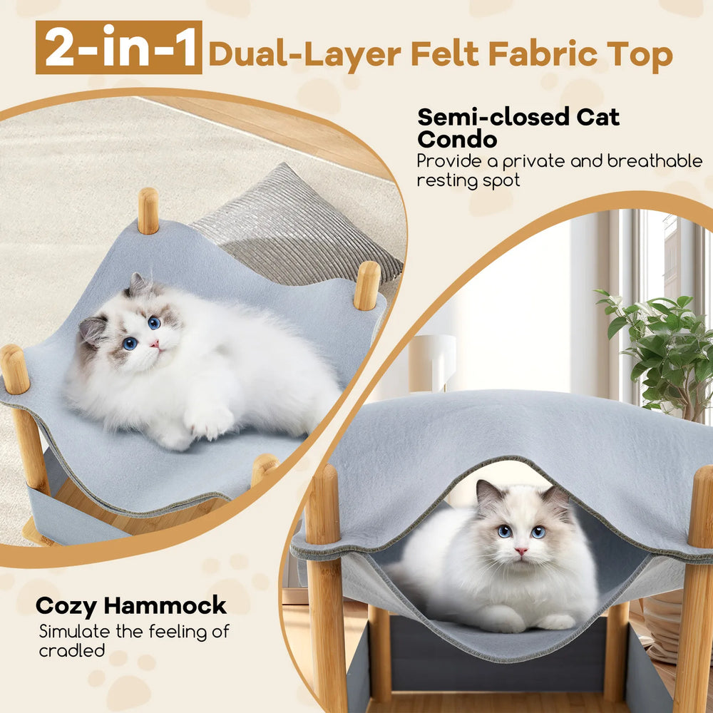 2-Tier Wooden Cat House with Semi-enclosed Condo and Removable Clothes-Grey