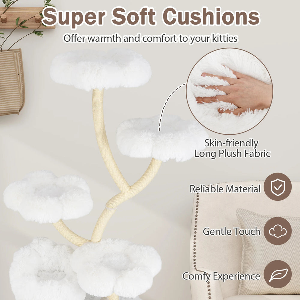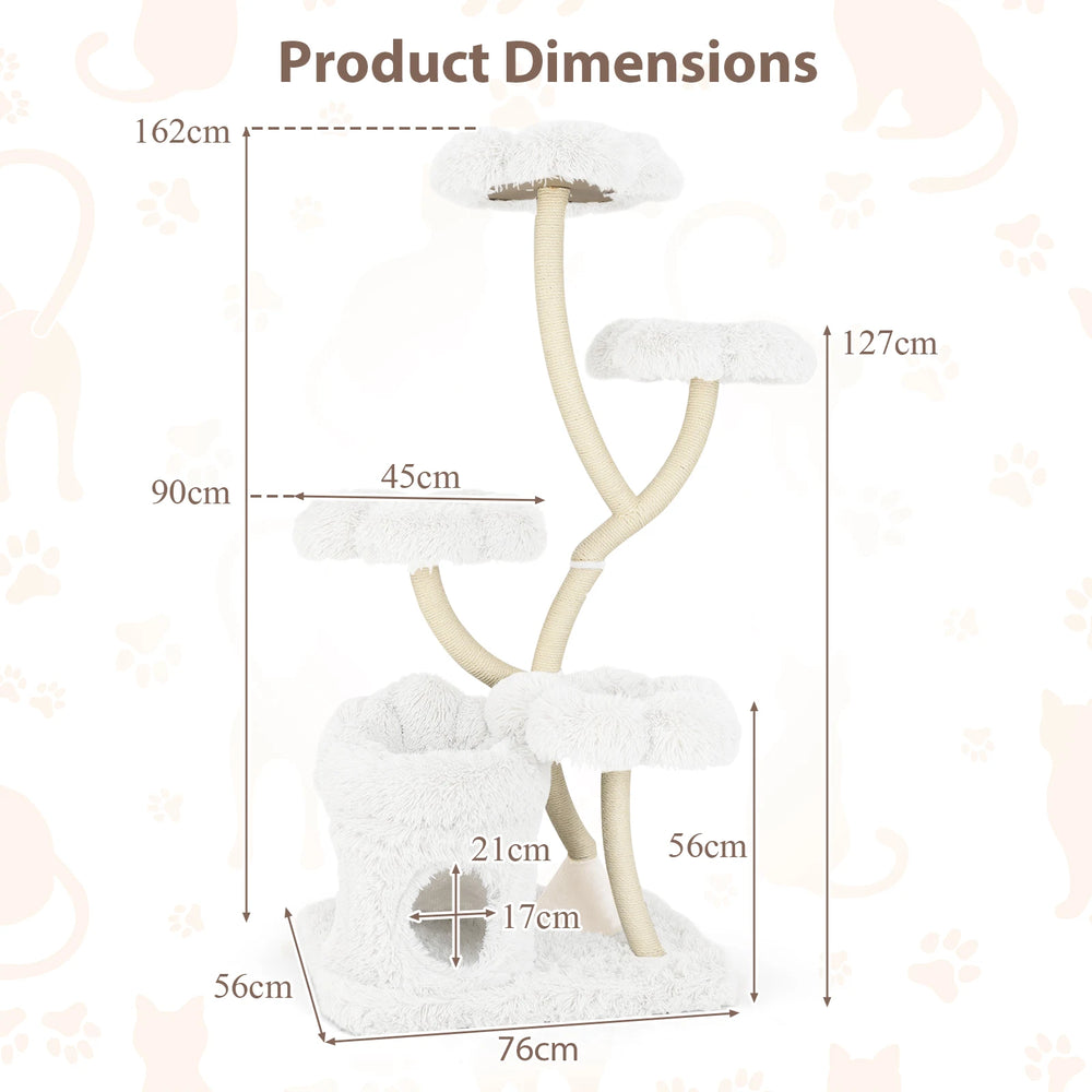 165cm Wooden Scratching Post with 4 Warm Lying Areas & Cat Cave & Sisal Posts Cat Tree White