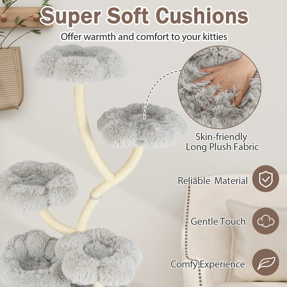 165cm Wooden Scratching Post with 4 Warm Lying Areas & Cat Cave & Sisal Posts Cat Tree Grey