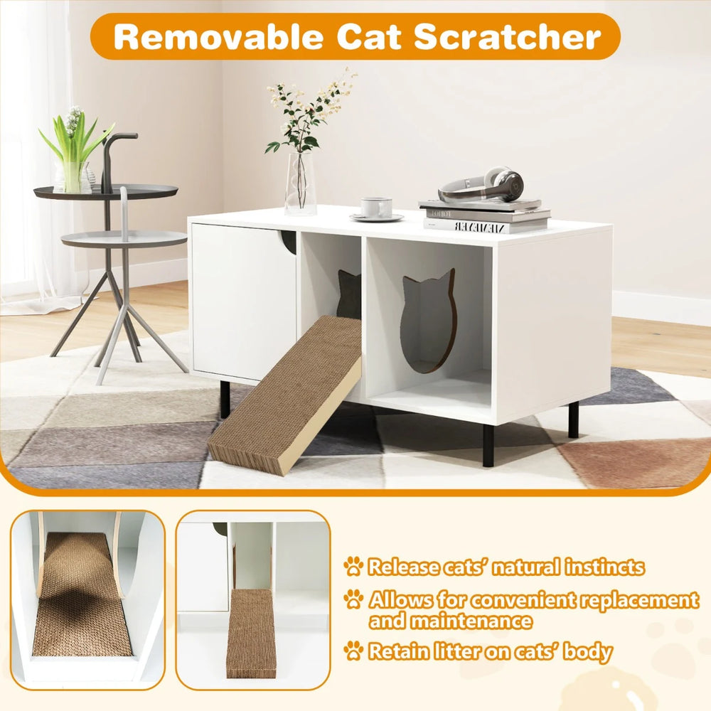 Cat Litter Box Enclosure with Storage and Removable Scratching Board-White