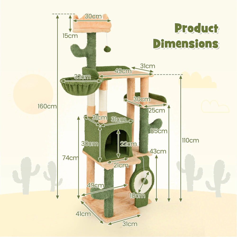 63 Inch Cactus Cat Tree with Sisal Scratching Posts and Board for Indoor Cats