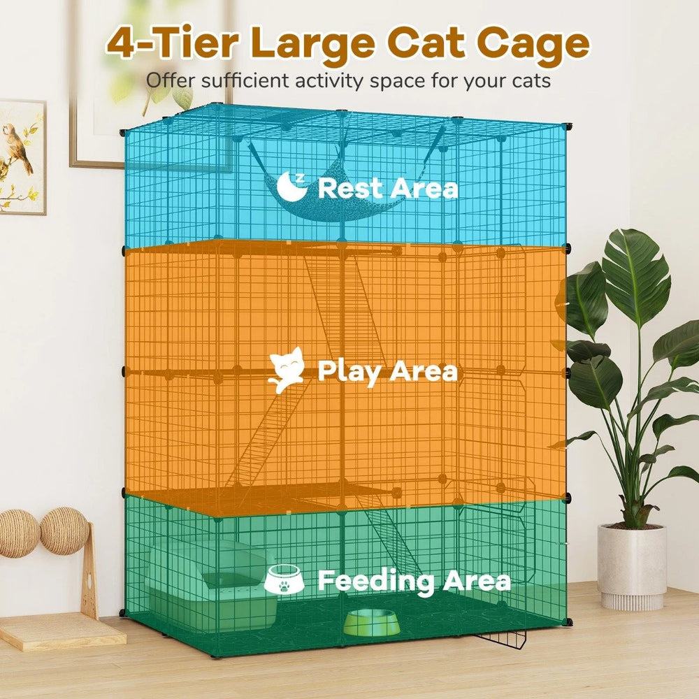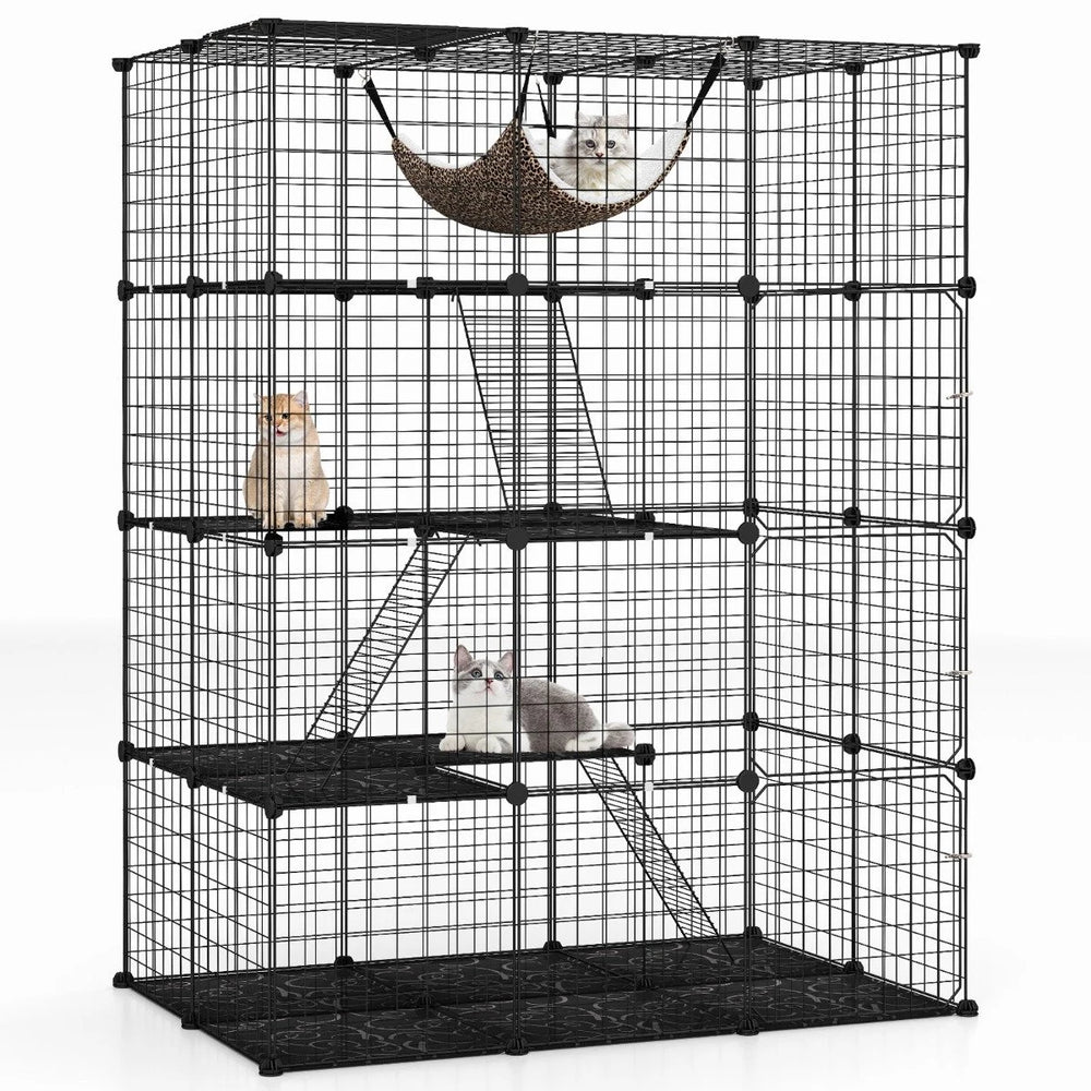 4 Tier Large Cat Enclosure with Comfy Hammock Ladders and Doors-Black