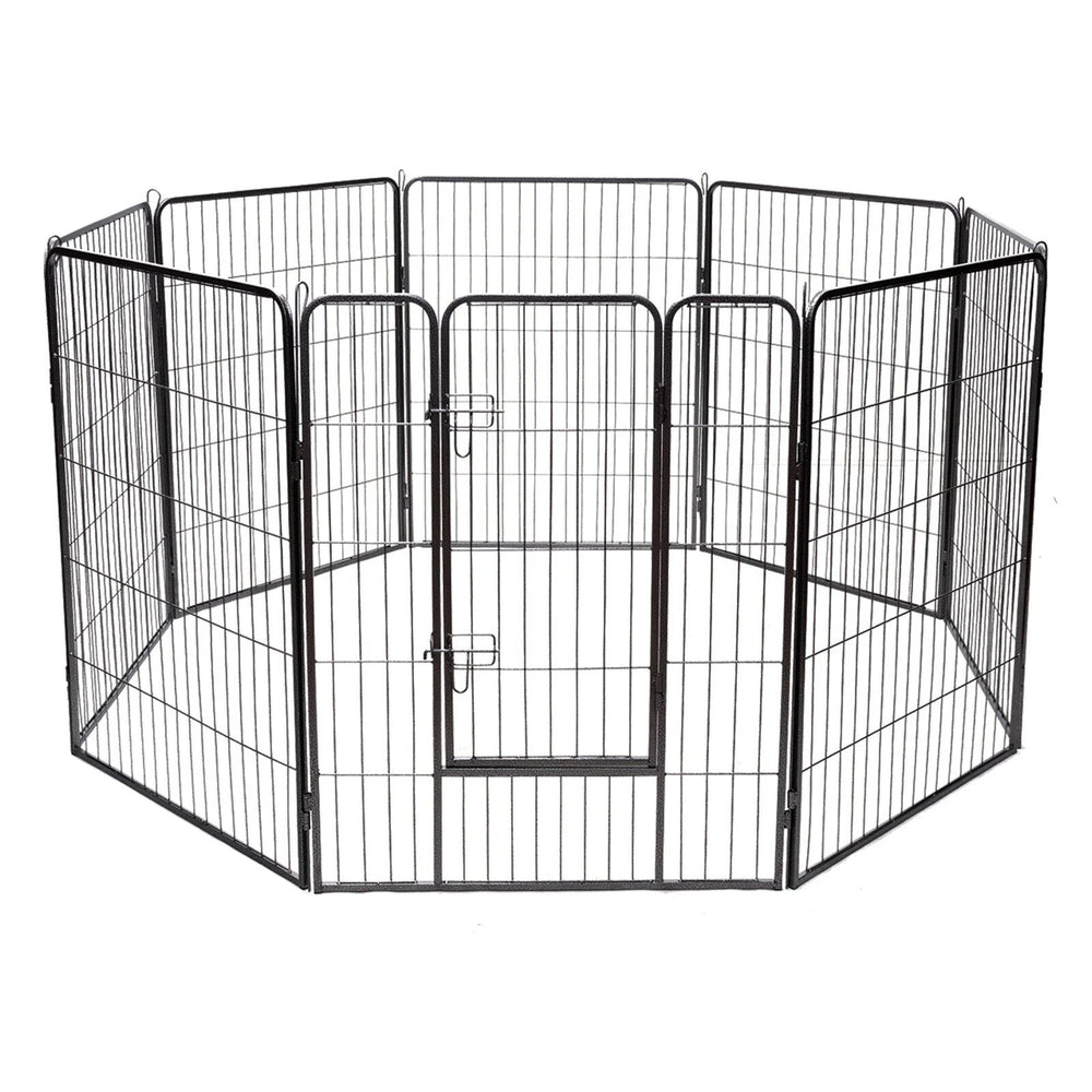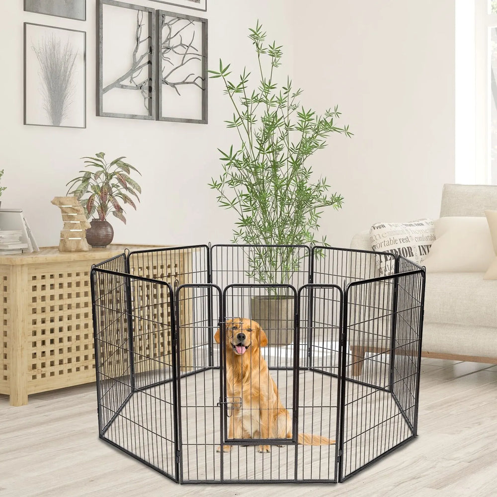 This 8-panel pet playpen creates a secure, flexible exercise and play area for non-climbing pets. Each panel measures 80 x 120 cm (W x H), and the kit includes seven wall panels plus one gate panel, allowing you to arrange square, octagon, rectangle, L-shape or other configurations to suit your space.