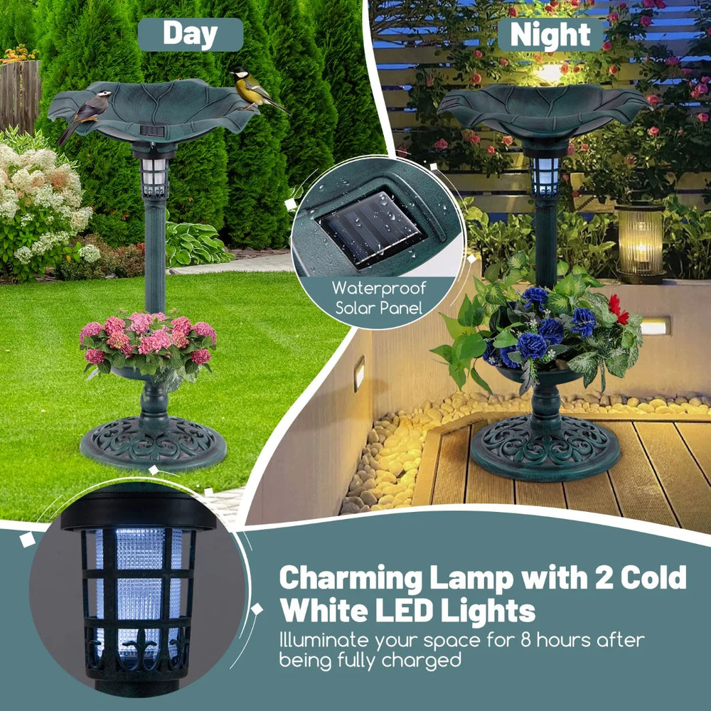 Solar-Powered Bird Bath and Feeder Combo Set for Garden Yard Lawn-Antique
