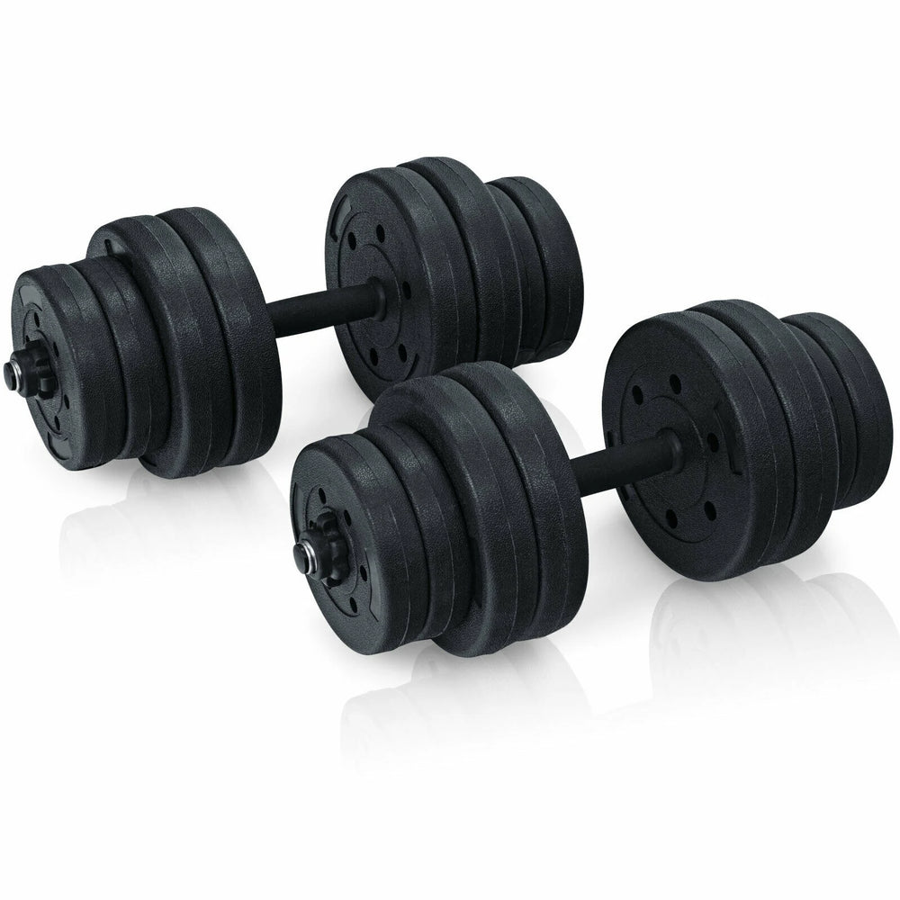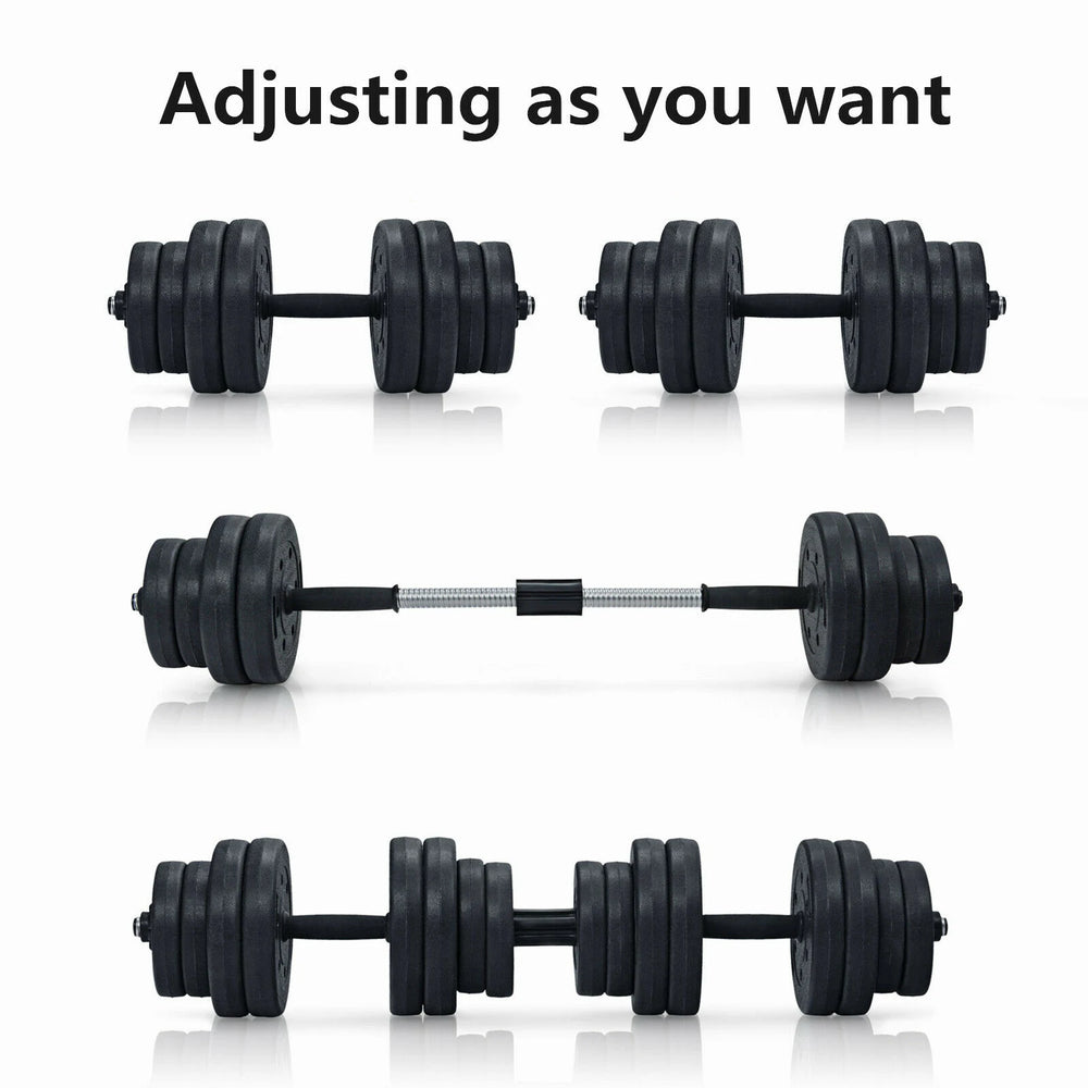 This 2-in-1 adjustable dumbbell and barbell set provides a compact, adaptable solution for home strength training. The complete 30kg set includes multiple 2.5kg and 1.25kg plates plus two dumbbell bars that can be joined to form a barbell, letting you switch between exercises without needing multiple separate tools.