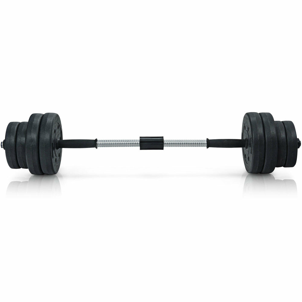 This versatile set is suitable for a wide range of strength exercises — from isolated dumbbell movements to compound barbell lifts when the bars are connected. Its compact components make it straightforward to store in a small space between workouts.