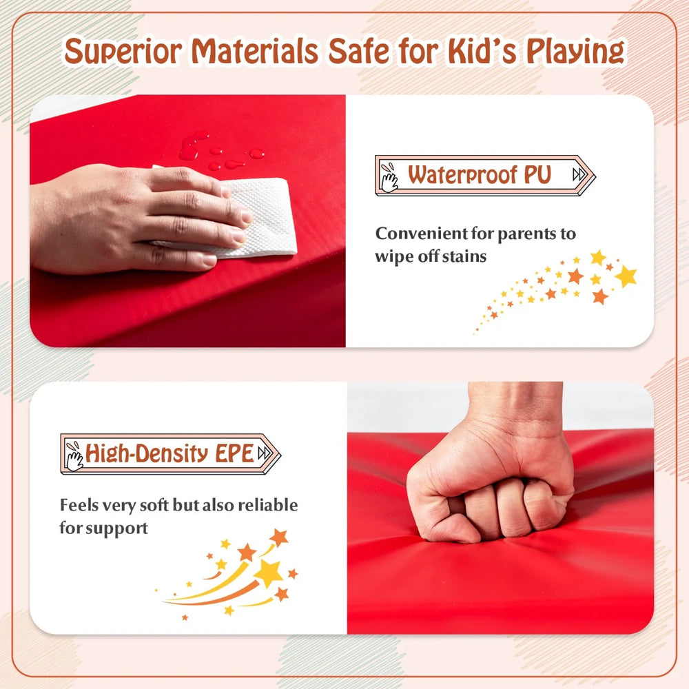 Choose this 11-piece foam block playset as a birthday present for your child! The package contains 3 rectangular blocks, 2 cuboid blocks, 3 right triangle blocks and 3 half cylinder blocks in different colors. Their PU covers are waterproof and tear-resistant, which is good for easy maintenance and a long service life. Their high-density EPE serves as protection for a soft touch and reliable grip. Besides, it is not easily deformed to keep almost new appearance. For children over 18 months, the climb and crawl activity set is a great educational game. Because the blocks are light, kids can easily move them to reshape while improving various skills such as color recognition, physical coordination, social skills and so on. Attributes: 11 Piece Foam Block Set: Kids can freely mix and match 11 foam blocks including 2 rectangular, 3 cuboid, 3 right triangle and 3 half cylinder for challenging and endless fun. All blocks are light and very convenient for children to move. Additionally, when they have fun with friends, their social skills will be developed naturally. Waterproof PU Covers: The climbing block set features high-quality PU covers that are known for excellent water resistance, allowing parents to easily wipe away any stains left while playing. In addition, all seams are firmly sewn to allow children to climb, crawl, romp and stumble freely without worrying about tears. Inner High Density EPE: The foam rock climber toy set is filled with soft but reliable EPE, which has a higher density to better resist deformation. It is important that each foam block does not have any hard structures or sharp corners with potential hazards. Even if children accidentally fall, they will be considerately protected by the inner EPE. Versatile applications: The climbing and crawling activity set is an attractive play area for children aged 18 months and over. Its bright colors immediately attract everyone's attention and the ingeniously designed shapes enable a wide range of combinations for individual needs. Also, it is possible to use these blocks separately in different places. EDUCATIONAL FOR KIDS: When kids move around these foam blocks, their physical coordination is trained subconsciously. Meanwhile, creativity is stimulated as they think about how to combine. Overall, all of the benefits are converted into brain development for the growth of a healthy child. Characteristics: Educational gift for children aged 18 months and over Consisting of 11 foam blocks that can be freely combined PU covers are waterproof and easy to clean while the kids play Wear-resistant and tear-resistant, ideal for long-term use Inner EPE is super soft for comfort and high density for reliable support Different colors and shapes to improve children's color and shape recognition Light weight makes them more convenient to move Applicable to living room, children's room, kindergarten and more