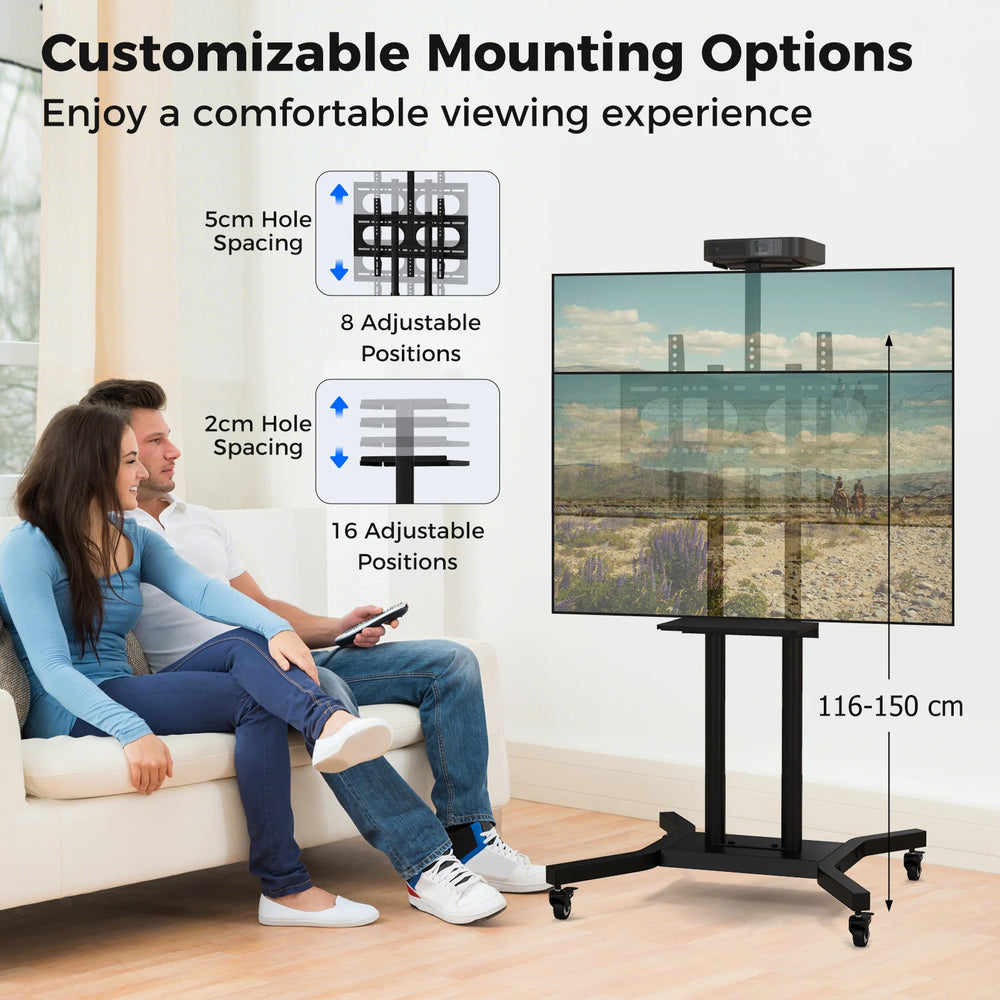 Mobile TV Stand Height Adjustable TV Cart with Lockable Wheels