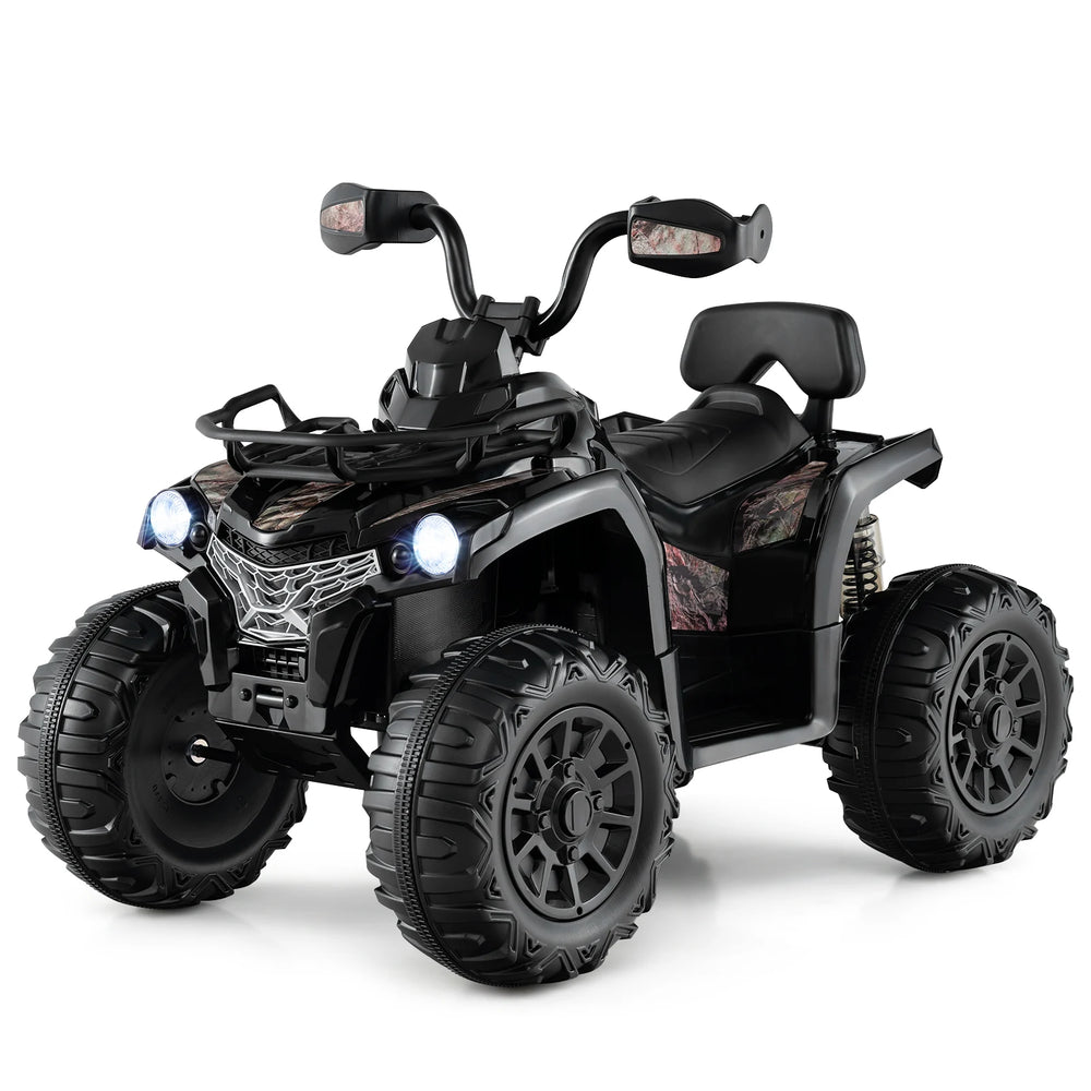 12V Electric Powered Quad Vehicle with Spring Suspension Oversized Wheels and Storage Basket-Black
