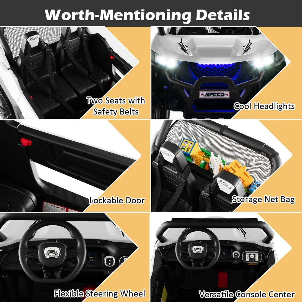 12V Battery Powered Electric Car 2-Seater Kids Ride on UTV-White
