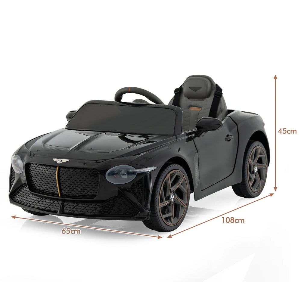 Officially licensed by Bentley Bacalar, this ride-on toy has 2 powerful motors for excellent performance. Kids are able to experience a realistic driving experience with the steering wheel, control lever and foot pedal. Besides, parents can choose to control the car if kids are too small to drive by themselves. With a multifunctional panel, you can connect your phone and realize track selection as well as volume adjustment. The white headlights, red rear lights and lighted dashboard bring extra fun. More importantly, the large and textured wheels with a spring suspension system on the rear ensure smooth driving. While the slow start is safer than the normal start. Furthermore, there are 2 charging ways. One is to charge through the charging hole and the other is to detach the battery for direct charging. If you are looking for such a product, do not hesitate to buy it! Officially Licensed Bentley Bacalar: This licensed Bentley ride-on car features a super cool appearance that appeals to kids a lot. Double doors with locks and gas rods as well as realistic rear mirrors mimic the outlook of a real Bentley. Moreover, 2 12V powerful motors and a 12V rechargeable battery ensure profound performance. Two Modes with Variable Speeds: With 2 modes for option, the ride-on toy is suitable for kids of different ages. For younger children, parents can use the remote to control the car for them. For older ones, they can enjoy a more immersive experience with the functional steering wheel, control lever and foot pedal. There are 2 speeds for kids driving mode and 3 speeds for parent control mode. Stable and Safe Driving Experience: The toddler electric vehicle is designed with a spring suspension system on rear wheels, which offers a more stable driving. Besides, the spacious seat with safety belt keeps children safe. And the slow start function avoids frightening kids because of sudden starts. Multiple Entertainment Functions: Built with horn sound, engine sound, music and storytelling, this licensed Bentley car allows toddlers to drive with fun. Also, you can connect your phones to play kids' favorite songs with the USB port, AUX port and wireless connection. Additionally, the bright LED lights add to the fun of driving. Worry-free Assembly and Charging: This battery powered car for kids comes with detailed instruction and complete accessories for easy assembly. Furthermore, 2 various charging ways are available since the battery can be detached for easier charging. Or you can charge the car with the convenient charging hole.