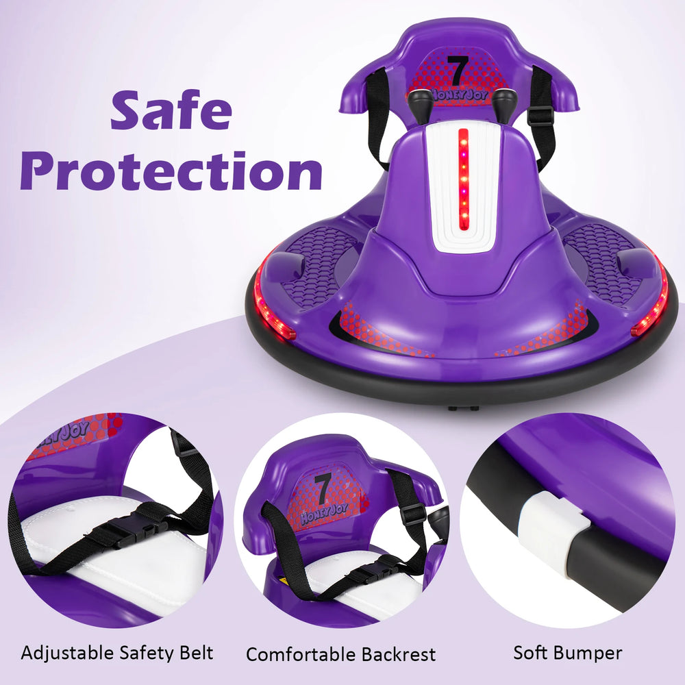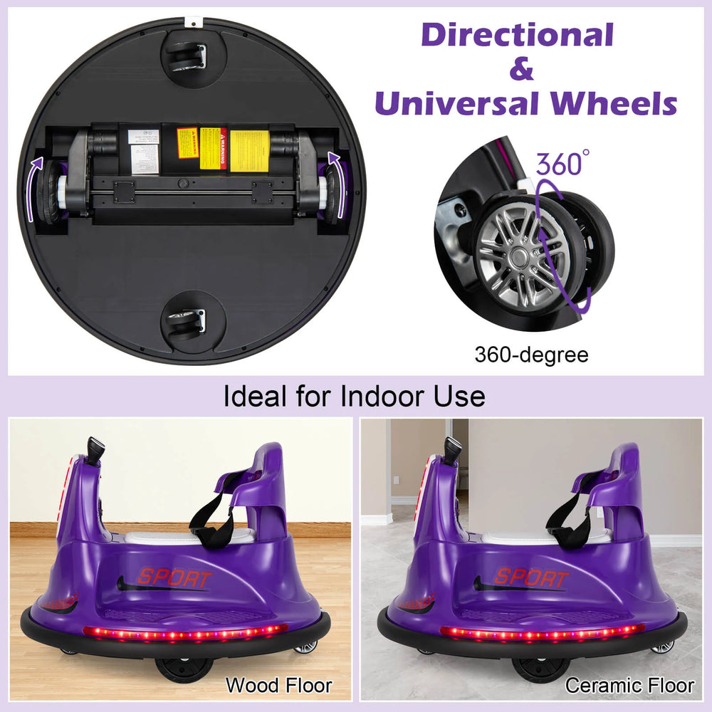 12V Kids Ride On Electric Bumper Car with Dual Joysticks and Remote Control-Purple