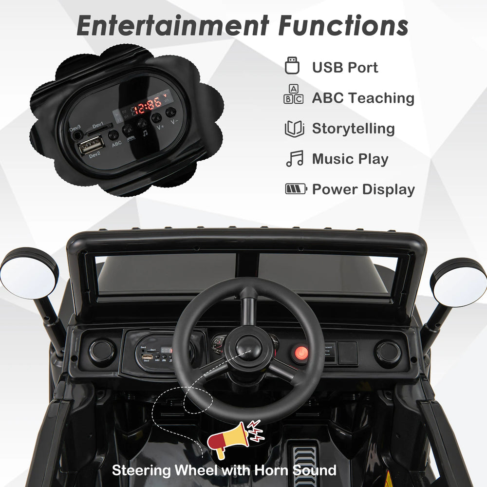 12V Kids Ride on Truck with Remote Control and 3 Speeds for Children-Black