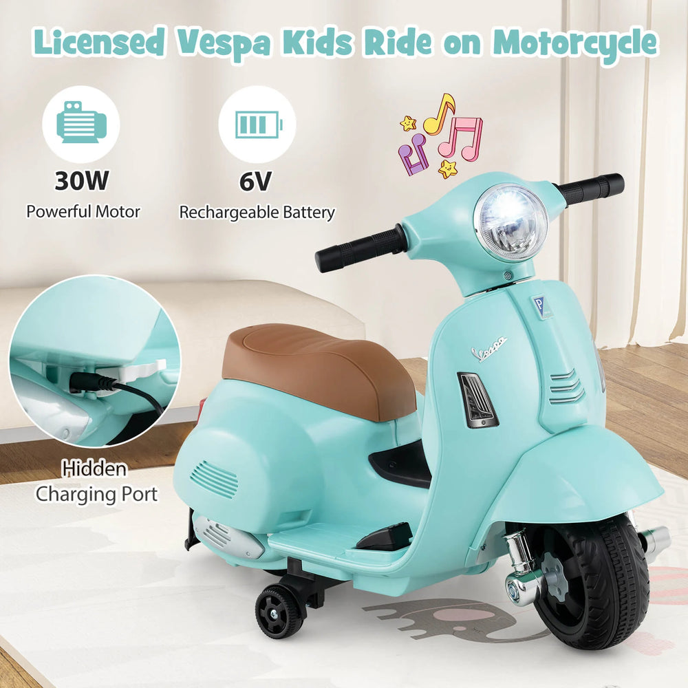 6V Kids Ride on Motorcycle Vespa Licensed with Lights and Horn Sound-Green