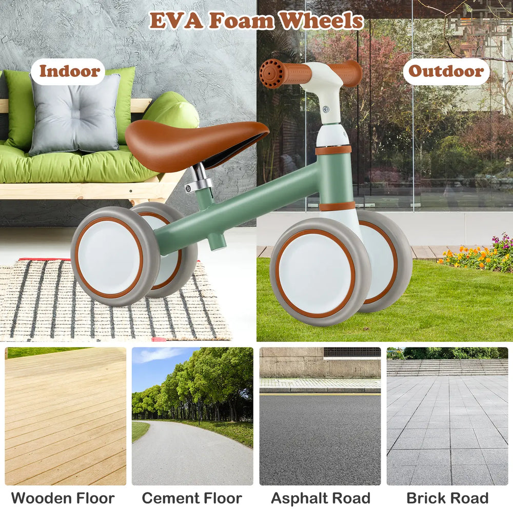 Baby Balance Bike with Height Adjustable Handle and Seat-Green