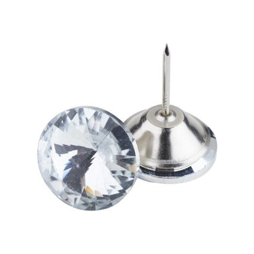 This Clear Glass Crystal Button is 20mm in diameter and has a 20mm Nail Back fitting making it ideal for use with headboards and pelmets.