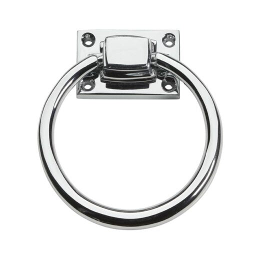 This elegant round ring furniture knocker handle adds a stylish touch to your design. This quality handle is manufactured in Solid Brass with a Chrome finish. 2 fixing screws are included for easy fitting
