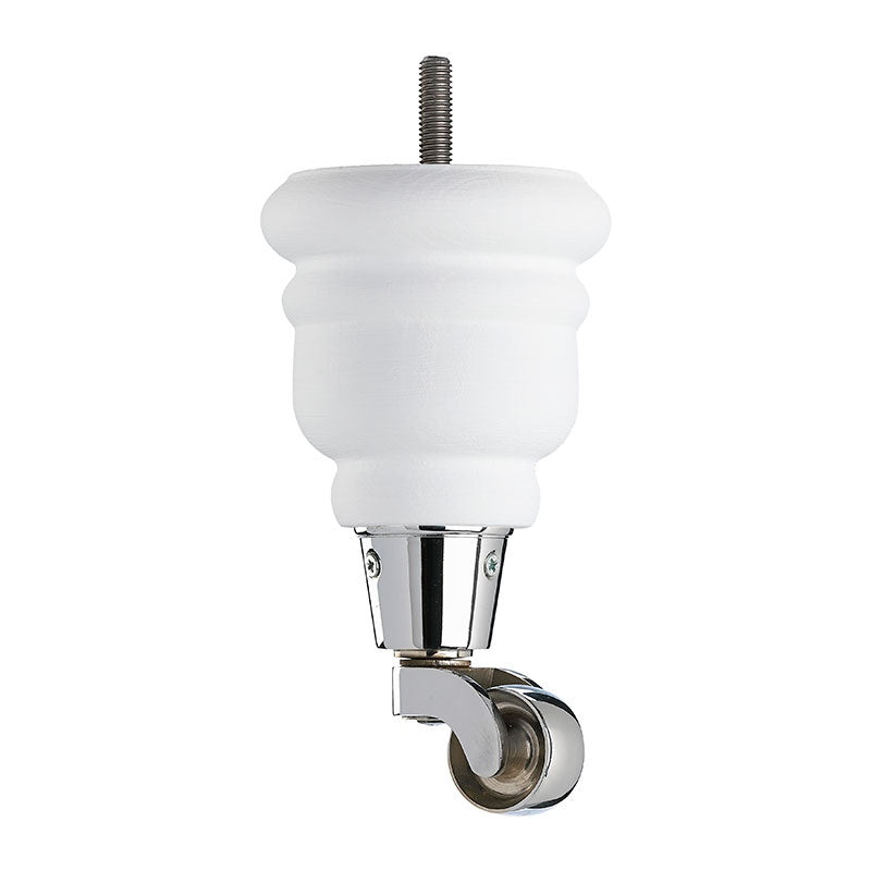 Brilliant White Hand Painted Sofa Leg – D-E0114BW - Chrome Castor is backordered and will ship as soon as it is back in stock.