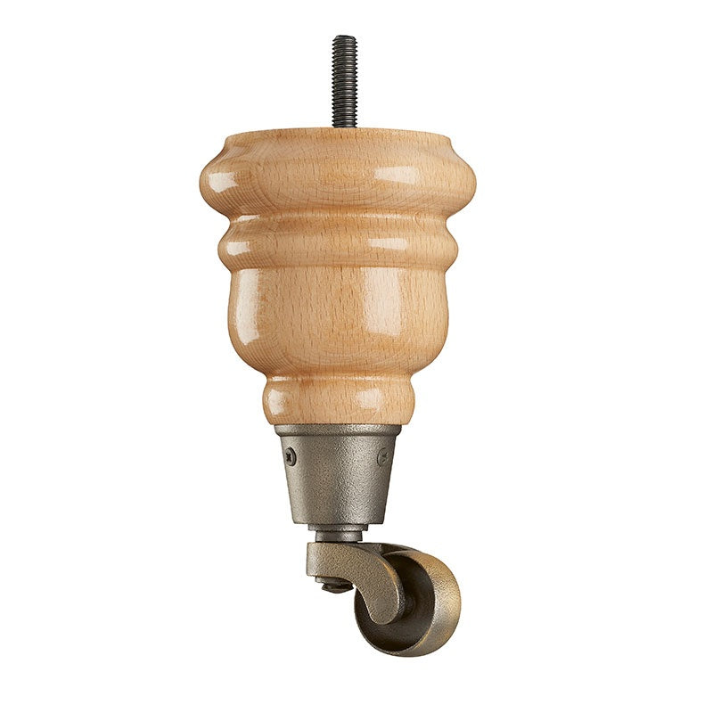 Turned Wooden Sofa Leg in a Natural Finish. This product is manufactured to a very high standard and is suitable for Sofas, Chairs and other similar applications. It is also fitted with an M8 dowel screw and comes with an M8 x 11mm T Nut for easy fitting. This leg is designed for use with our range of 1 1/4 inch (32mm) Round Cup Brass Castors. Select your desired fitted castor from the above options.