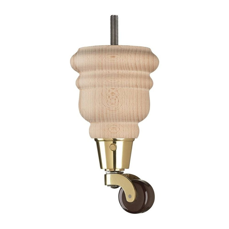 Raw Finish Turned Wooden Sofa Leg – D-E0114R - Brass with Brown Wheel