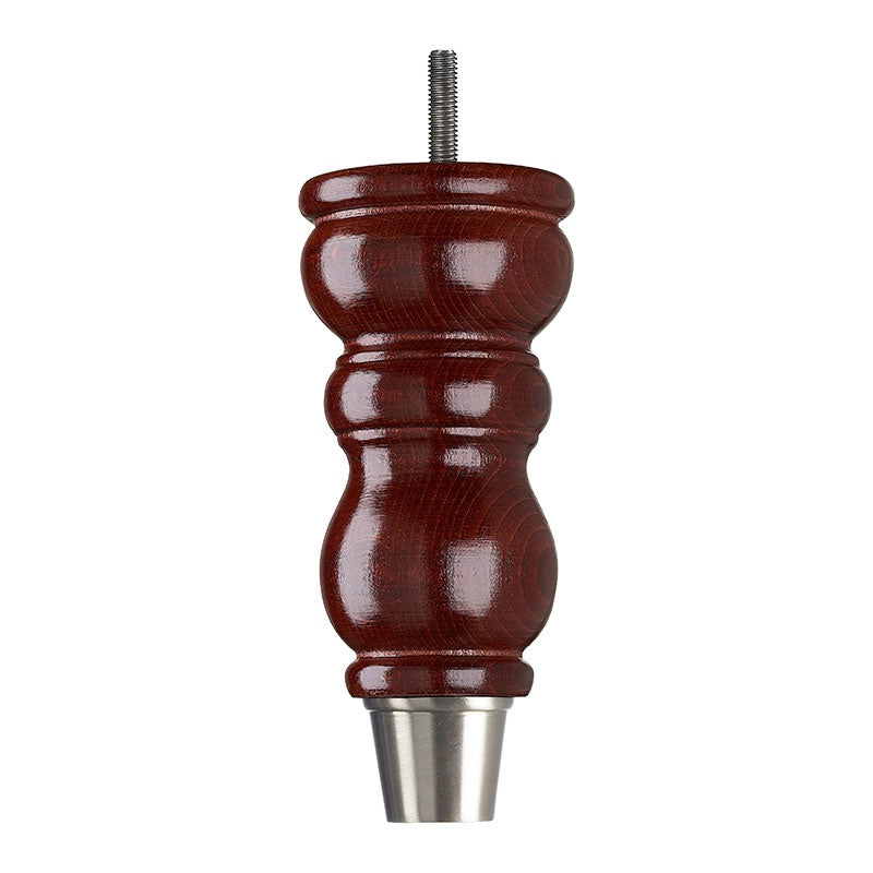 Turned Wooden Sofa Leg in a Mahogany Finish. This product is manufactured to a very high standard and is suitable for Sofas, Chairs and other similar applications. It is also fitted with an M8 dowel screw and comes with an M8 x 11mm T Nut for easy fitting. This leg is designed for use with our range of 1 1/4 inch (32mm) Round Cup Brass Castors. Select your desired fitted castor from the above options.