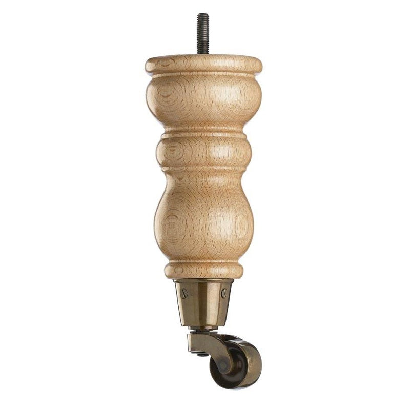 Turned Wooden Sofa Leg in a Natural Finish. This product is manufactured to a very high standard and is suitable for Sofas, Chairs and other similar applications. It is also fitted with an M8 dowel screw and comes with an M8 x 11mm T Nut for easy fitting. This leg is designed for use with our range of 1 1/4 inch (32mm) Round Cup Brass Castors. Select your desired fitted castor from the above options.