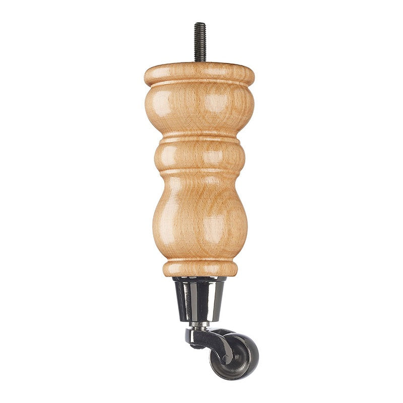 Turned Wooden Sofa Leg in a Natural Finish. This product is manufactured to a very high standard and is suitable for Sofas, Chairs and other similar applications. It is also fitted with an M8 dowel screw and comes with an M8 x 11mm T Nut for easy fitting. This leg is designed for use with our range of 1 1/4 inch (32mm) Round Cup Brass Castors. Select your desired fitted castor from the above options.