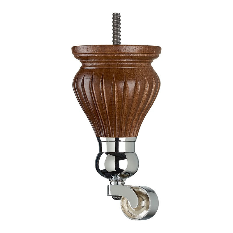 Turned Wooden Sofa Leg in an Antique Finish. This product is manufactured to a very high standard and is suitable for Sofas, Chairs and other similar applications. It is also fitted with an M8 dowel screw and comes with an M8 x 11mm T Nut for easy fitting. This leg is designed for use with our range of 1 1/4 inch (32mm) Round Cup Brass Castors. Select your desired fitted castor from the above options.