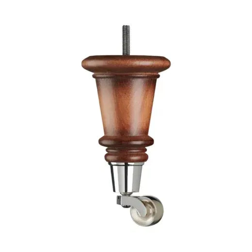 Antique Finish Turned Wooden Sofa Leg – D-E1971A - Chrome Castor