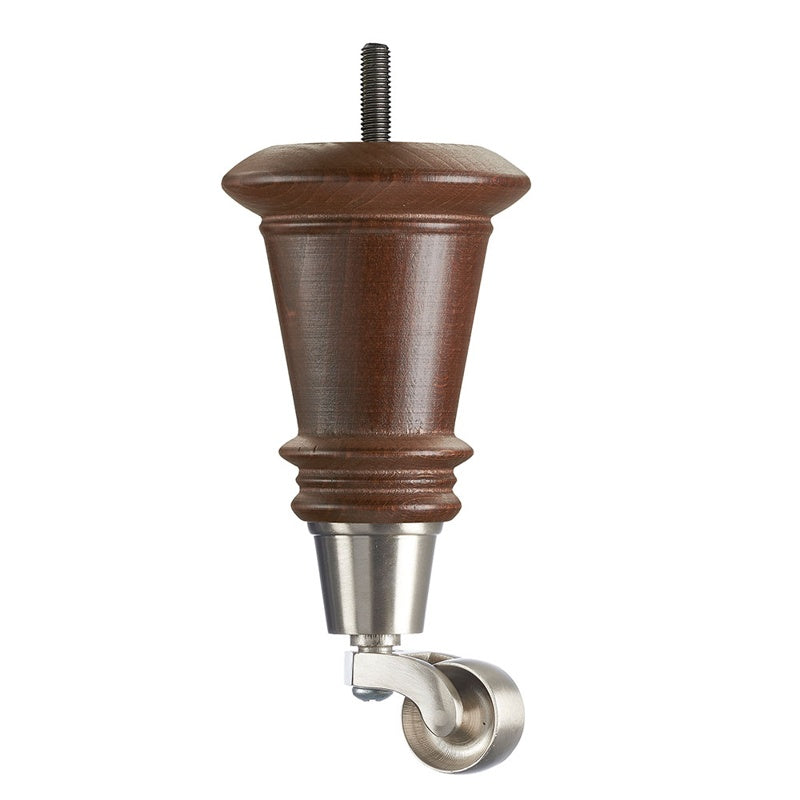 Antique Finish Turned Wooden Sofa Leg – D-E1971A - Stainless Steel Finish Castor is backordered and will ship as soon as it is back in stock.