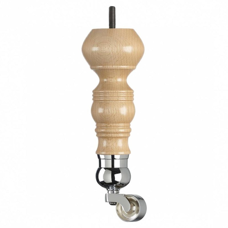 Turned Wooden Sofa Leg in a Natural Gloss Finish. This product is manufactured to a very high standard and is suitable for Sofas, Chairs and other similar applications. It is also fitted with an M8 dowel screw and comes with an M8 x 11mm T Nut for easy fitting. This leg is designed for use with our range of 1 1/4 inch (32mm) Round Cup Brass Castors. Select your desired fitted castor from the above options.