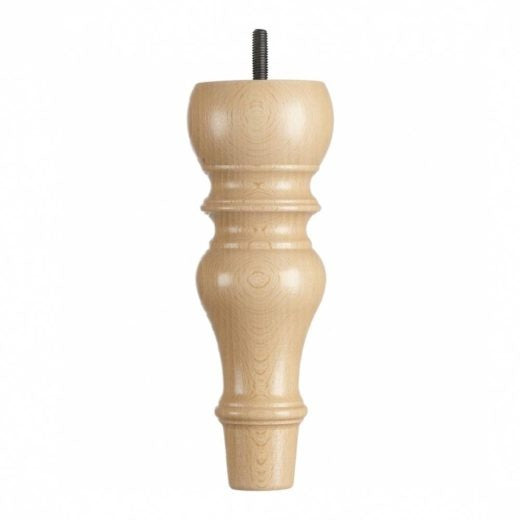 Turned Wooden Sofa Leg in a Natural Gloss Finish. This product is manufactured to a very high standard and is suitable for Sofas, Chairs and other similar applications. It is also fitted with an M8 dowel screw and comes with an M8 x 11mm T Nut for easy fitting.