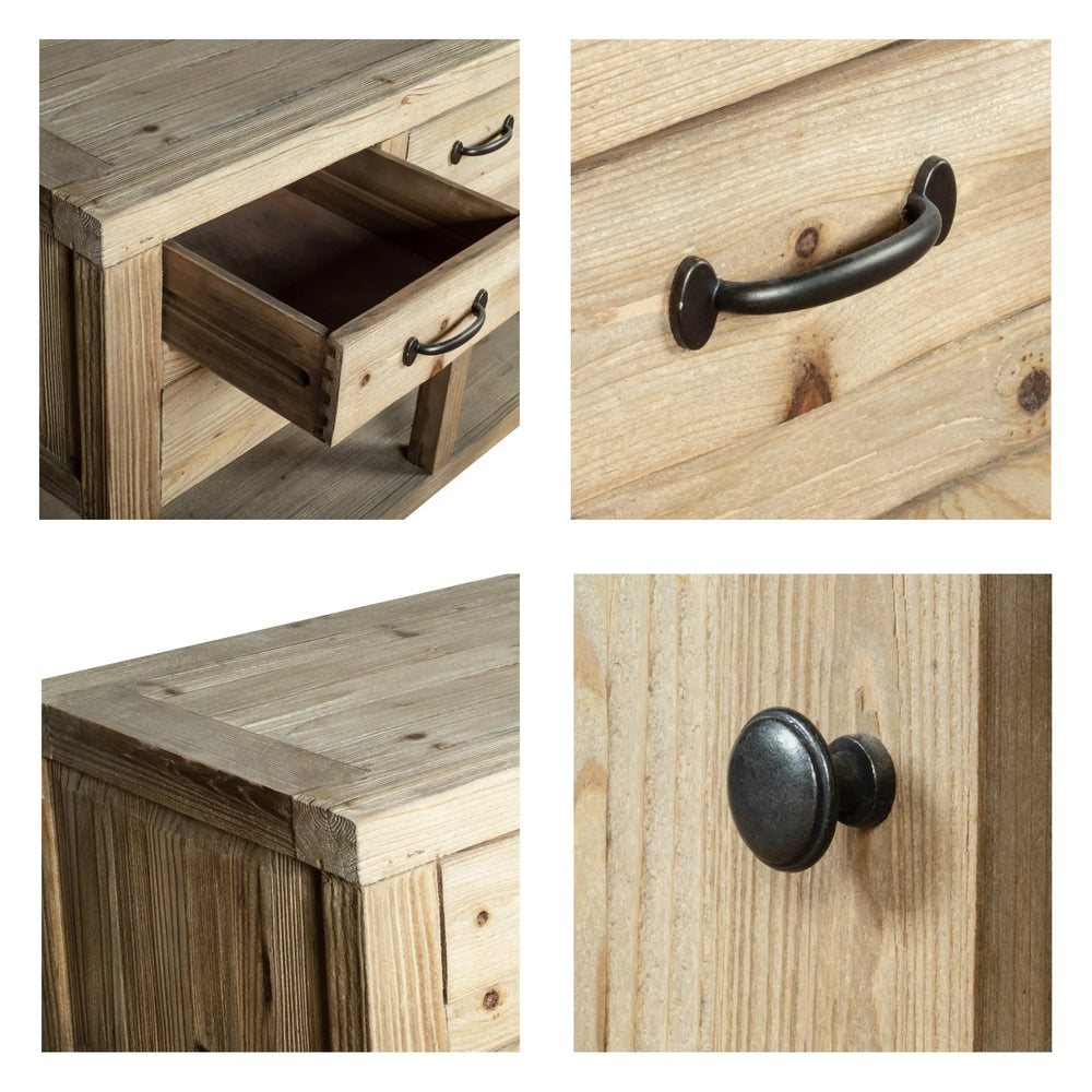 Because the timber is reclaimed and eco‑friendly, each bench has unique surface marks and colour variations that add charm. The construction combines solid reclaimed pine with solid poplar and plywood supports for a durable piece that develops a patina with age.