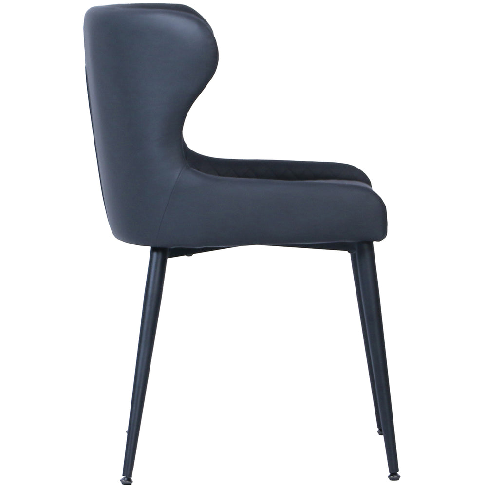 Sitting on slender black powder-coated metal legs, this chair combines comfort and durability. The gently curved back supports the body for relaxed dining, while the padded seat keeps long conversations comfortable.