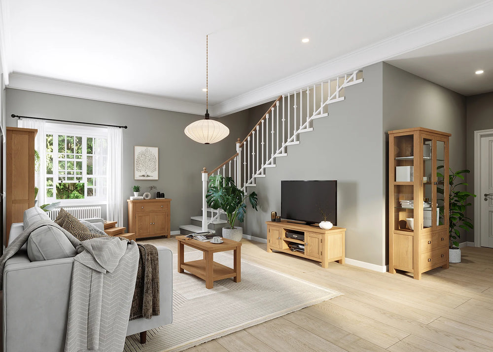 The Wessex Oak 120cm TV Unit combines solid oak fronting with practical storage for modern living rooms. Clean straight lines and stylish panel detailing give a contemporary look that works with neutral or warm interiors. The unit is finished in a protective light lacquer which highlights the oak grain while making day-to-day care straightforward.